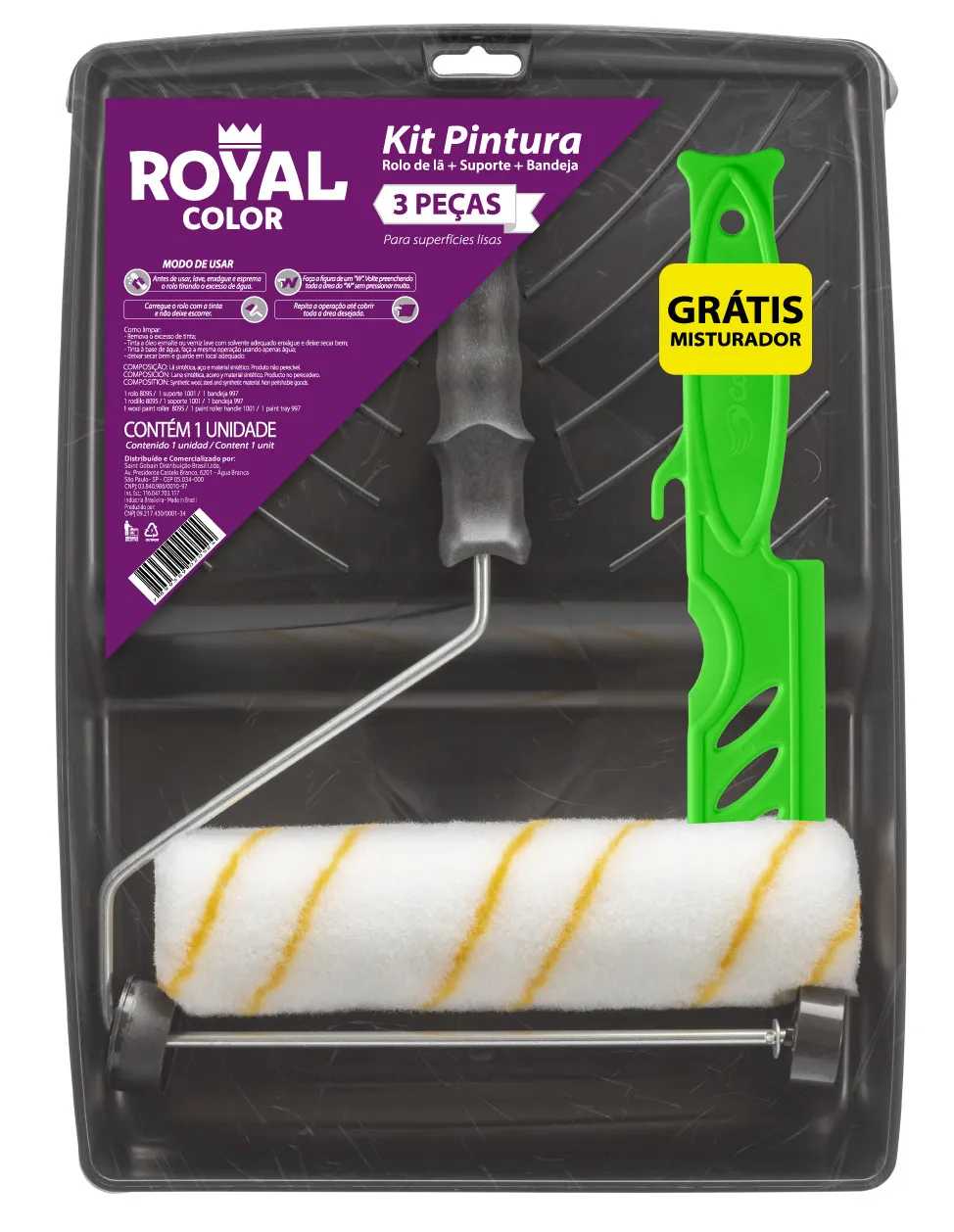 Conteúdo: 1 Bandeja 997 1 Rolo 8095/23Cm – Manta Em Sintética Poliester Com 10Mm De Altura Uma Listra Amarela. 1 Suporte Para Rolo 1001 – Arame Diâmetro 5,50Mm