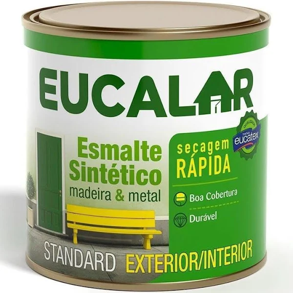 Eucalar Esmalte Sintético é recomendado para a pintura de superfícies externas e internas de metais, madeiras e alvenaria. É um produto de alta qualidade, de fácil aplicação, secagem rápida, excelente rendimento e durabilidade, proporcionando um ótimo acabamento e grande resistência às intempéries.