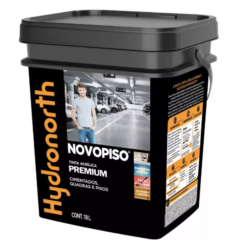 A Tinta Acrílica Novopiso é ideal para pisos, oferecendo proteção e embelezamento com alta resistência. Três vezes mais durável, adere bem a diversos substratos e tem acabamento fosco, ótimo rendimento e resistência à limpeza.